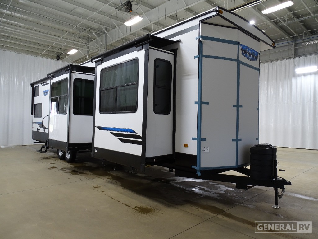 You will experience a home away from home with any one of these Forest River Salem Grand Villa destination trailers! Their construction consists of a 12″ forged I-beam frame, a cambered chassis, and plywood floor decking, as well as 5″ bowed truss roof rafters, 3/8″ roof decking, and color coded water lines to make life easier. The one-piece, seamless slides and 106″ interior living room height makes for more walking around space. A Best in Class Value package includes upgraded designer furniture, a central vacuum with sweep attachment, and stainless steel kitchen appliances. Plus, it also features a heated and enclosed Accessi-Belly with removable panels and an exterior LED light strip under the awning. Come choose your favorite model today!