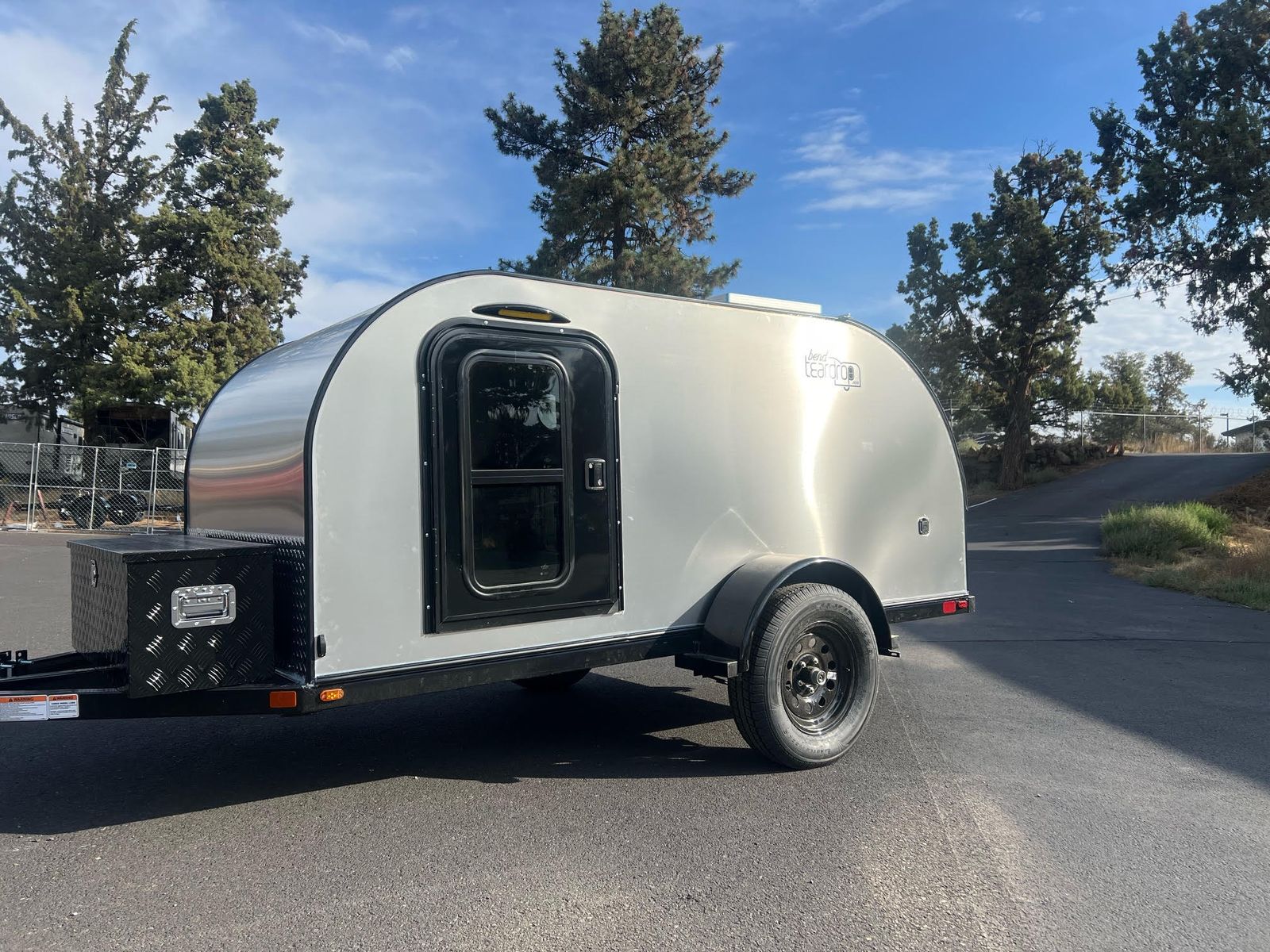 This 5×10 Bend Teardrop Camper sleeps three and a half comfortably with a Queen-sized floor and 58.5″x30″ kids bunk that can slide back to open up the cabin for couples. Outdoor Galley Kitchen included! This ready to roll Teardrop only weighs 1,200lb and can be towed by almost any vehicle with a hitch and can even be moved by hand. This one comes with most of our most popular add-ons but can be further customized to meet your needs. It comes with: